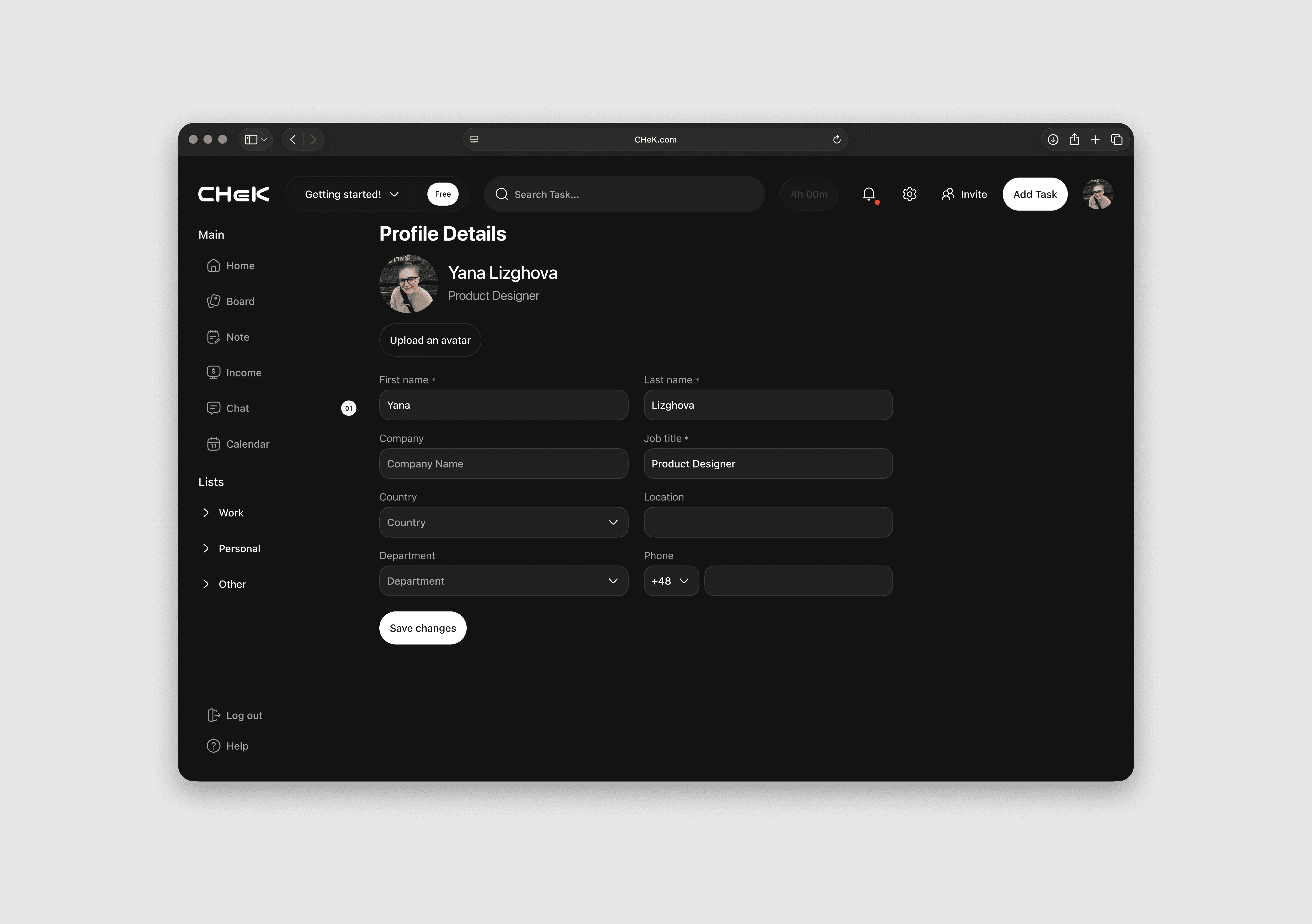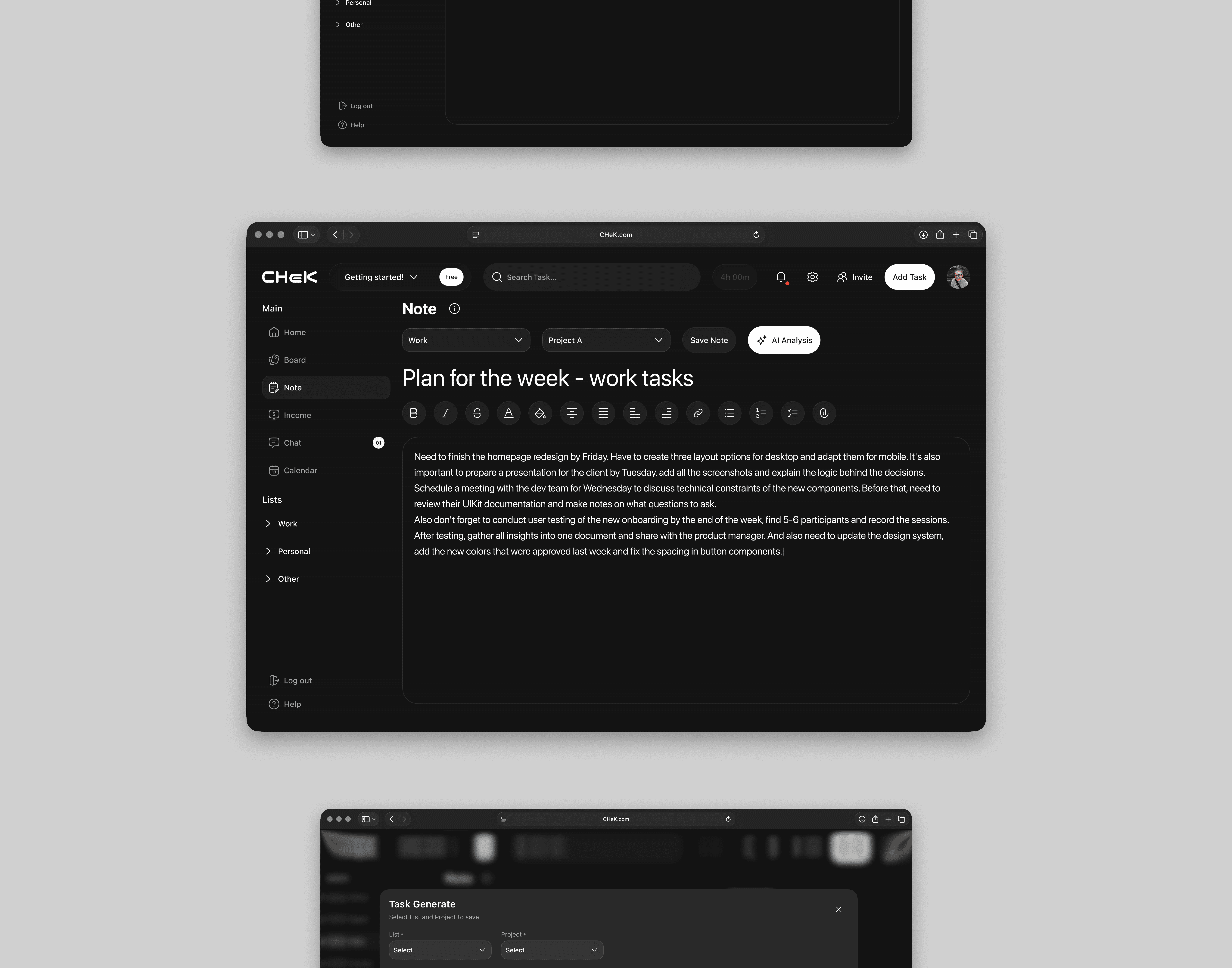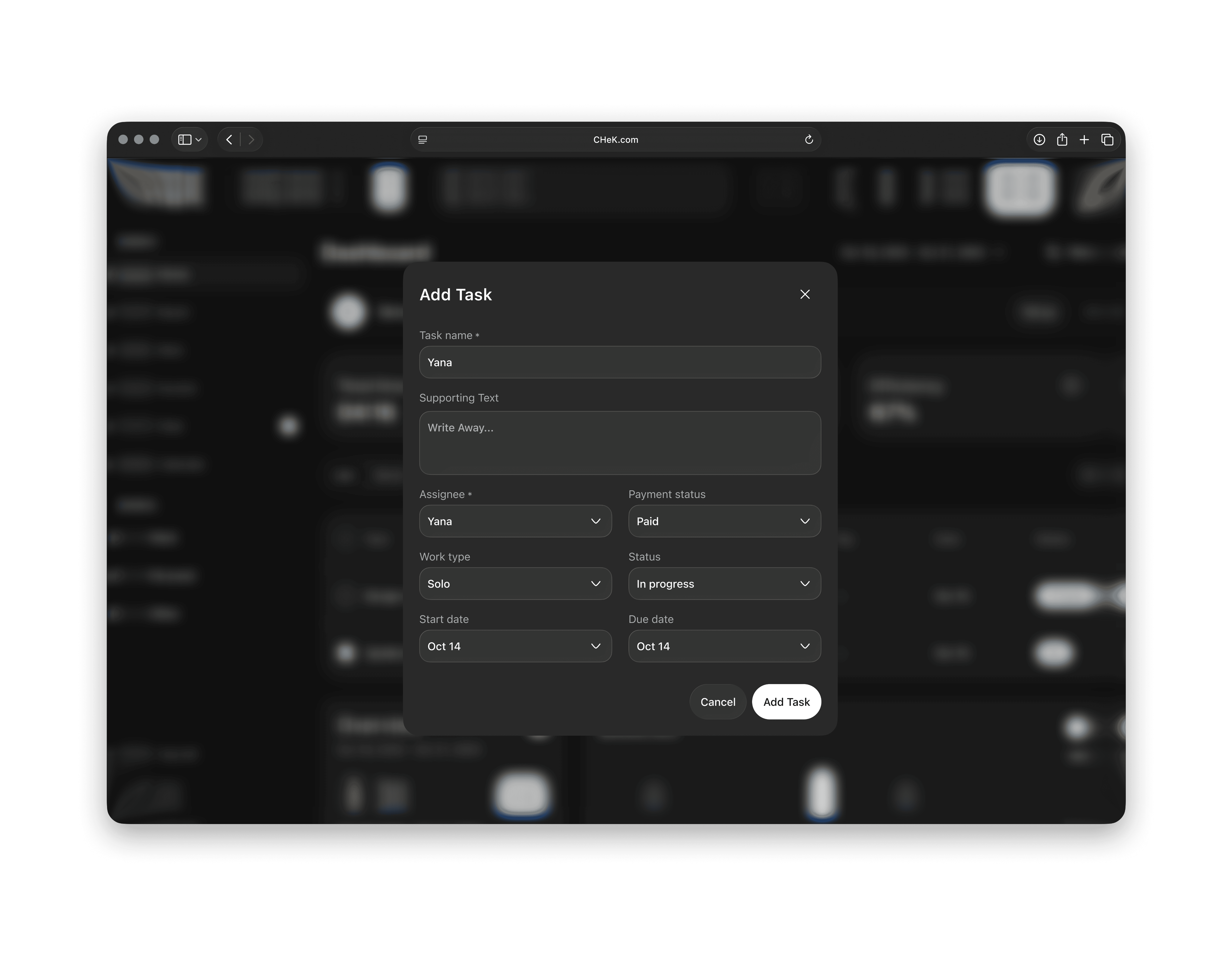 You can add a task for yourself on almost any flow, because this is the core element — without it, YOUR system in this product won’t grow. Once added, a modal window opens with the main inputs to fill in the task details.