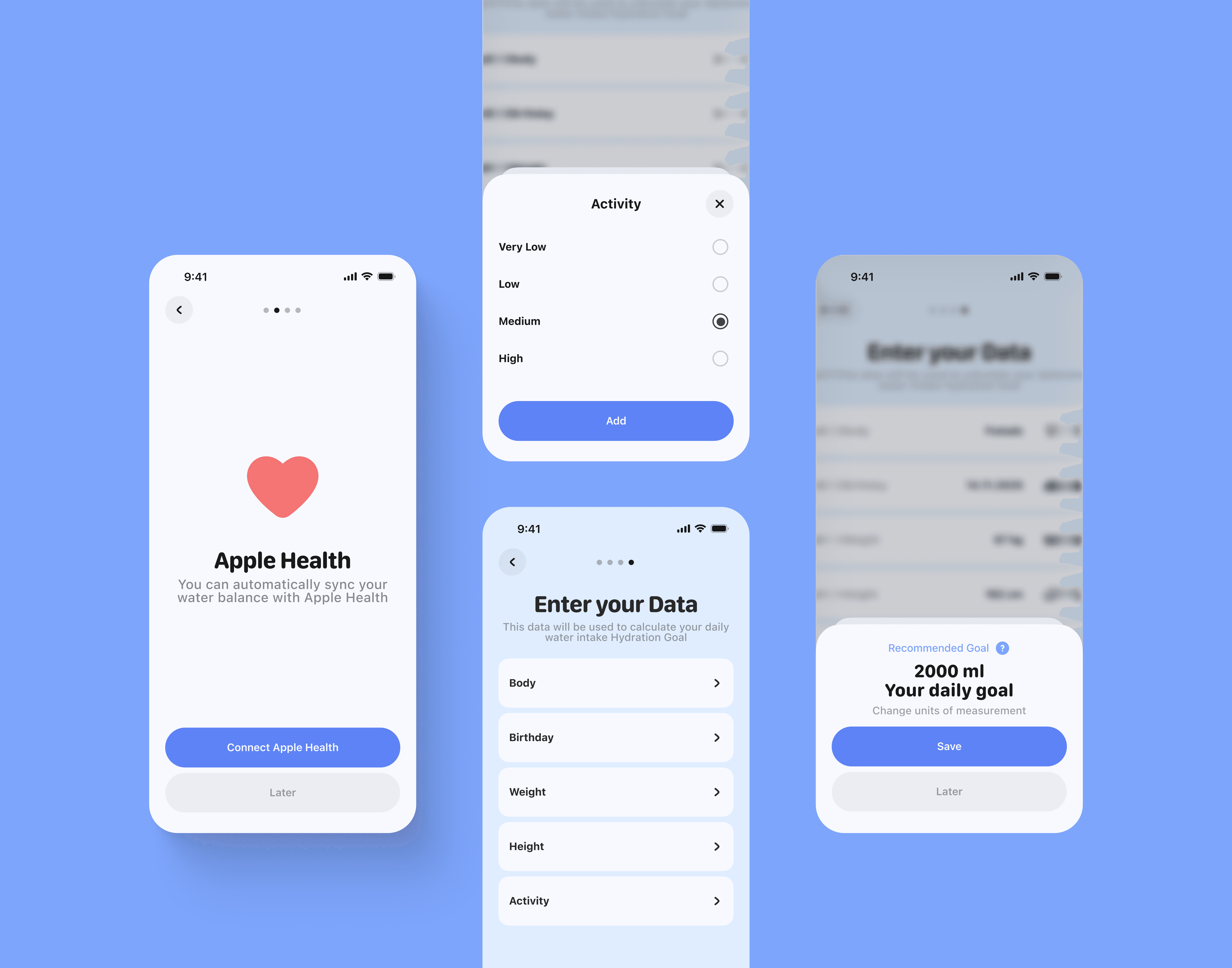 Next, across the screens, after so much talk about calculating personal targets, you can finally see how it works in the scenario. All the criteria – such as weight, height, activity level, age, and biological sex – affect this value.
